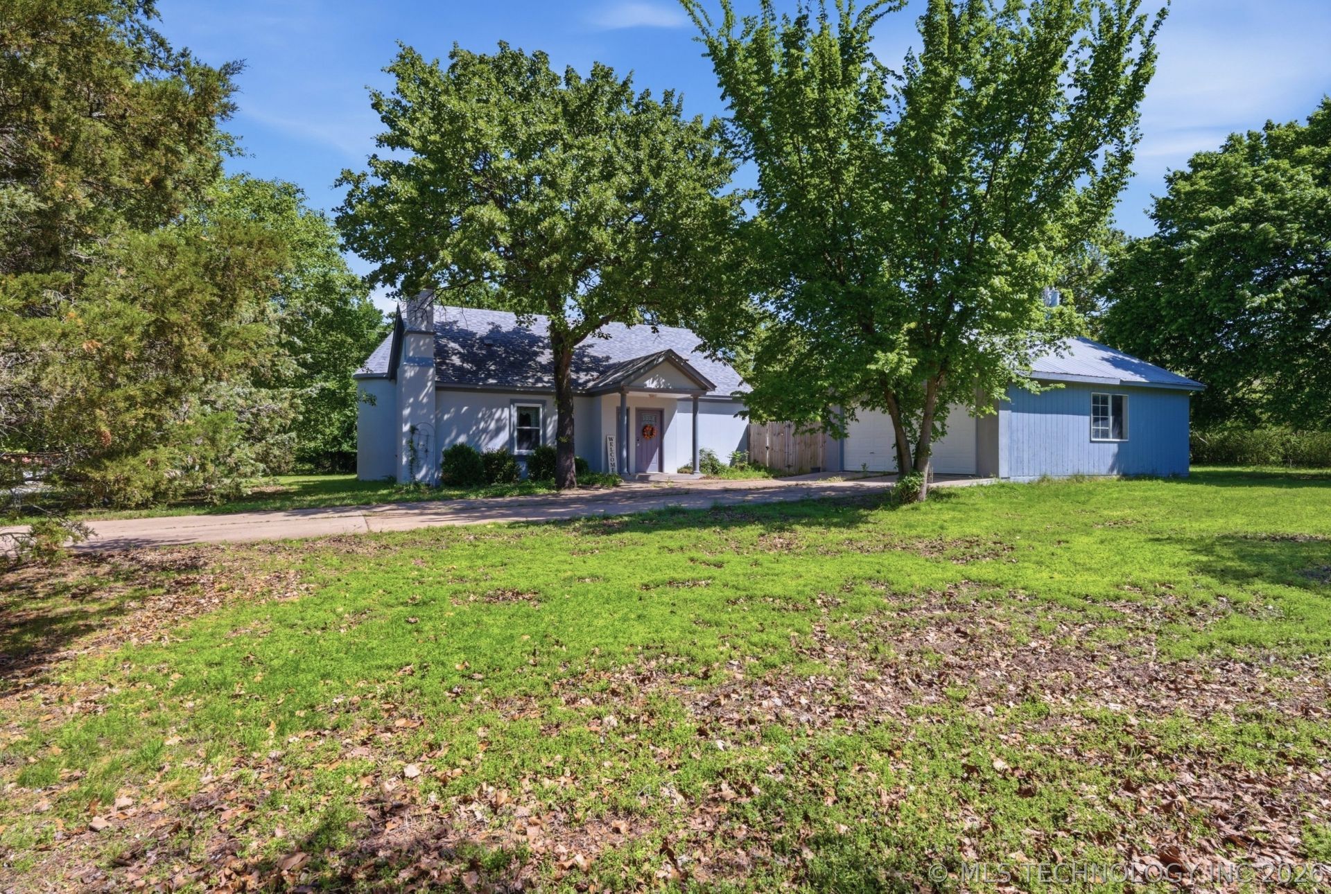 This charming 3-bed, 2-bath home features a distinctive castle-inspired turret and sits just one mile from White Horn Cove Marina on Ft. Gibson Lake. Situated on an oversized 0.52-acre lot, the property includes a 2-car detached garage with workspace and a large storage building ideal for lawn equipment and lake gear. Enjoy peaceful mornings and evenings on the covered front and back porches. Inside, the home offers a cozy wood-burning fireplace, Quartz countertops, a whirlpool tub in the main bath, and newer carpet and pad upstairs. A bonus room on the main level provides flexibility for an office or potential 4th bedroom. Kitchen appliances are less than four years old, and the home offers abundant storage, including a walk-in pantry and a spacious indoor laundry room. Some cosmetic updates are needed and are reflected in the price. The seller is motivated. Experience the beautiful surroundings, quiet neighborhood, and convenient location-just 10 minutes to Wagoner and within 2 miles of a gas station and Dollar General.